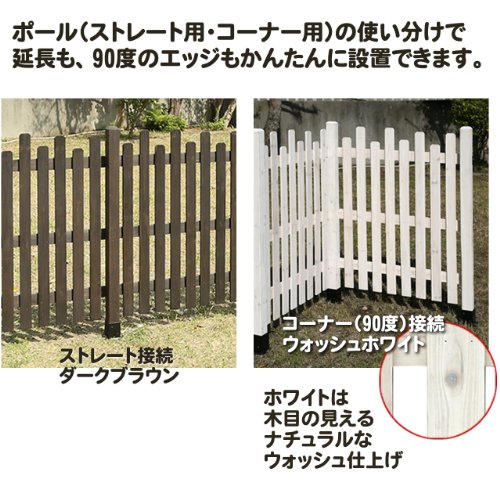 - ボーダーフェンス (ピケット ミドル) ウォッシュホワイト 1枚、ポール固定用木ネジ