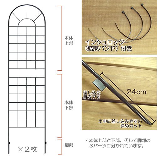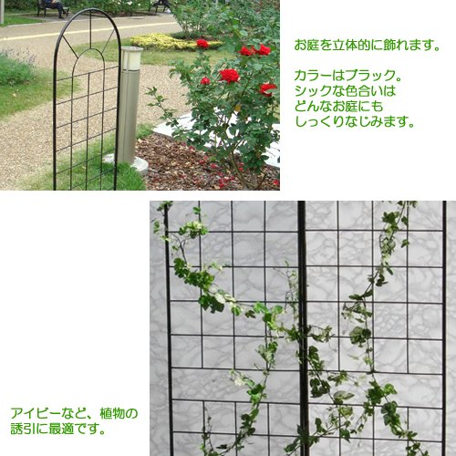 Elegant & Decorative!! 優雅なデザインのハイフェンスは存在感抜群!!つるバラなどの植物を誘引すればお庭をダイナミックに演出できます。カラーはシックなブラックなのでお花の色彩や緑を鮮やかに引き立てます。結束バンドが付属します。