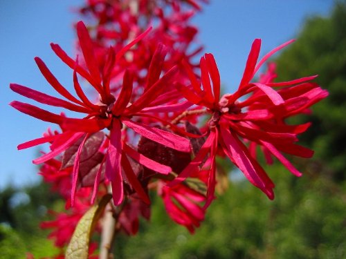 | 適地・管理 | 【庭の雰囲気や好みの色で選びましょう】 当店で販売している常盤マンサクは、 赤葉×赤花、青葉×ピンク花、青葉×白花です。 ちなみにこちら熊本では赤葉×赤花が人気があるようです。 日向~半日陰で水はけの良い土壌を好みます。 生垣や寄せ植えにする場合は剪定をして形を整える必要があります。 成長が早いので手入れをしないと幅も出てどんどん大きくなります。 生垣の場合は1mに約3本間隔で植え込みます。 庭木の場合は周りの樹木と離して植えてください。 寒さ、霜には弱い品種なので関東以北での成長は難しいです。 |