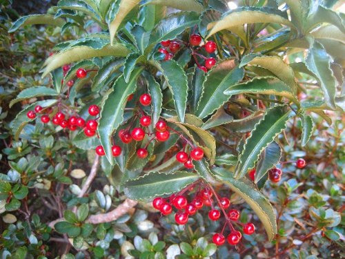 冬に熟す小さな赤い果実がとても美しい樹木です。