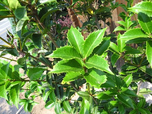| 適地・管理 | ヒイラギモクセイは刈り込みや煙害に強い樹木です。 土壌を選ばず、日向でも日陰でもよく育ちますが陰樹である為、 北側の植栽に向いています。 枝を伸ばしすぎて切ると枝が枯れたりしますので なるべく伸ばさないで切るようにしましょう。 萌芽力がとても強いですので強い刈り込みにも耐えます。 |