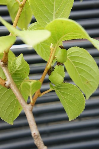 果実は無毛でキウイフルーツより小さく緑色の2~3cm程度のものに熟します。