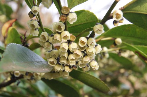 サカキ類のホンサカキも同じく神棚に供えられる縁起木として有名です。