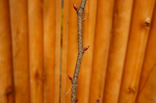葉は互生し、ハナズオウに似たハートの形で全緑。秋にはその年に伸びた