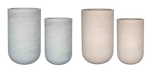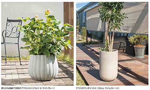 ファイコンストーン 材質:ファイコンストーン ファイコンストーンは、ストーンパウダーとグラスファイバーを セメントで混ぜて強度をアップさせた素材。 均一なストライプ模様や柔らかな曲線美が空間を彩ります。 ●素材の特性上、汚れの付着、紫外線による変色、白華現象が起こる可能性があります。 また、強い衝撃にはご注意ください。 カルム(大) 約W420×D420×H700mm/約16.9kg 容量:約69L 水抜き穴あり