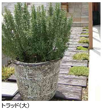 材質:テラコッタ テラコッタは、イタリア語の「焼いた(cotta)」「土(terra)」。 レンガや陶器と並んで、歴史ある素材です。 800~1000度で焼成。しっかりとした質感と重量があります。 アンティーク調ポット トラッド(大) 約φ460×H390mm/約17kg 内寸:約φ390mm/容量:約34L 水抜き穴あり