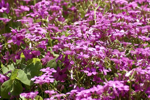 イモカタバミは夏に濃ピンク色の小花を沢山咲かせる球根植物で、