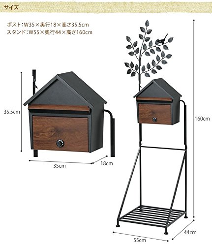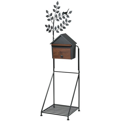 備考:可愛らしい木葉と小鳥モチーフのスタンド一体型ポスト。花台つきでプランターが飾れます。※ポストの設置位置は固定です。そのままでも自立しますが、花台部分に物を置くことで安定いたします。