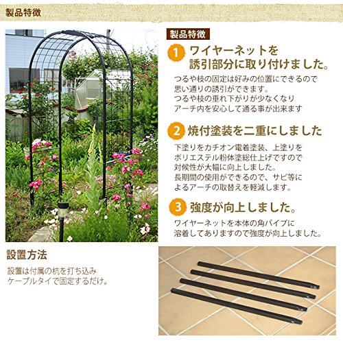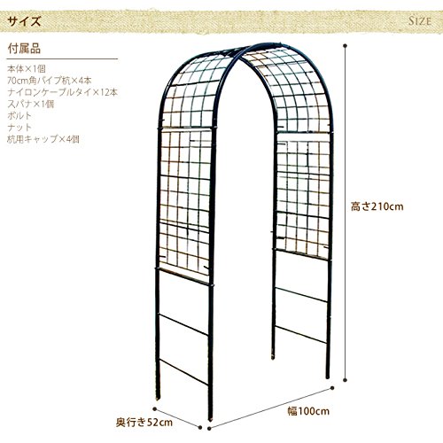 備考:植物を誘引できる、格子状のガーデンアーチ。シンプルなデザインで、つるバラなどとの相性はバッチリ。二重焼付塗装でサビに強く、長期間の使用も期待できる上質なアーチ。