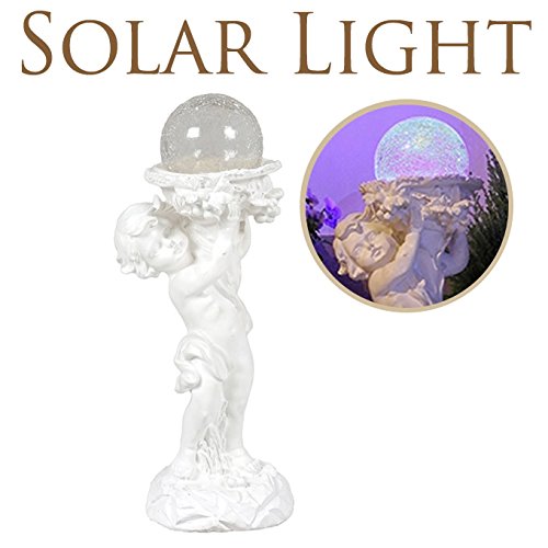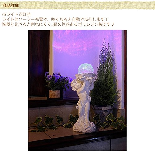 備考:ライトは「赤、緑、青」の3色がランダムに光ります。(ぼや~っと変色する感じです) ソーラー充電で、暗くなると自動で点灯。陶器と比べると割れにくく、耐久性があるポリレジン製品です。
