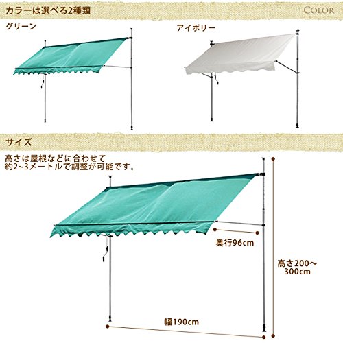 つっぱり日よけルーフ 幅190cm アイボリー