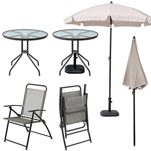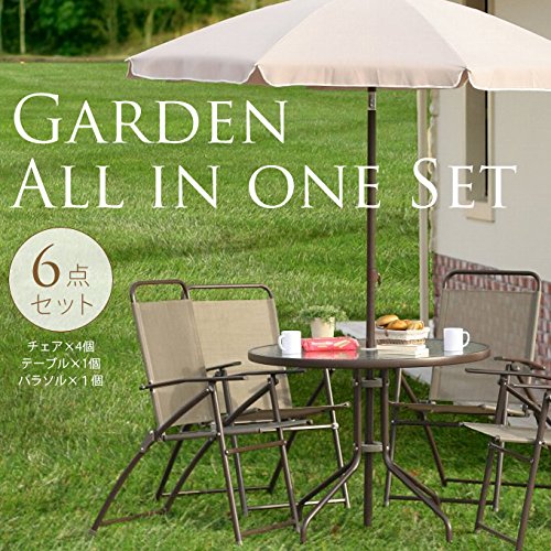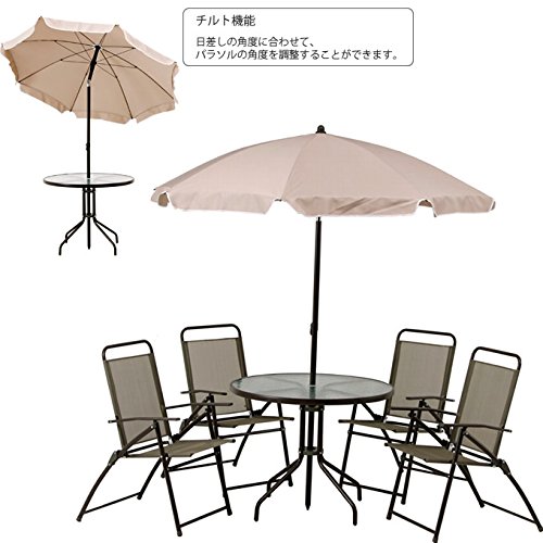パッケージ内容:テーブル×1、折りたたみチェア×4、パラソル×1