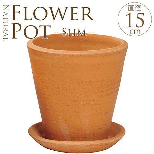 素焼き植木鉢スリム 直径15cm (※受皿別売)