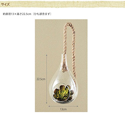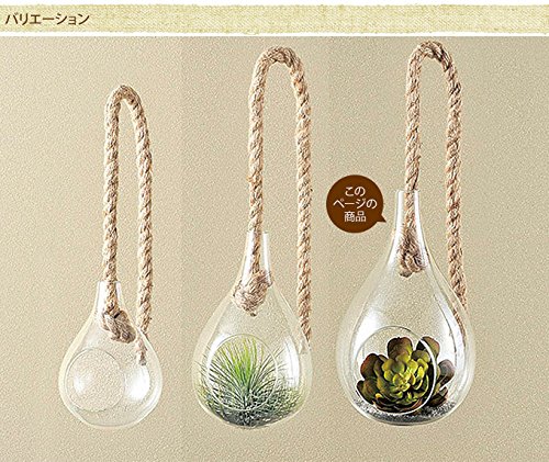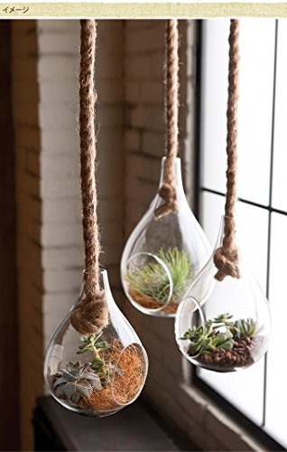 備考:壁に、天井に、ハンガーなどに、吊るして楽しむおしゃれなハンギングガラス。雫のようなドロップ型のフォルムに、ロープで固定したジャンクスタイルが、よりガラスの中のグリーンを引き立てます。エアプランツなどをディスプレイしてお楽しみください。