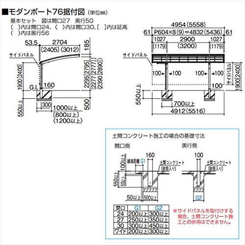 キロスタイル-IS モダンポート76 1台用 2450 標準高 基本セット ポリカーボネート板【アルミカーポート 自動車屋根】 ステンカラー/グレースモーク