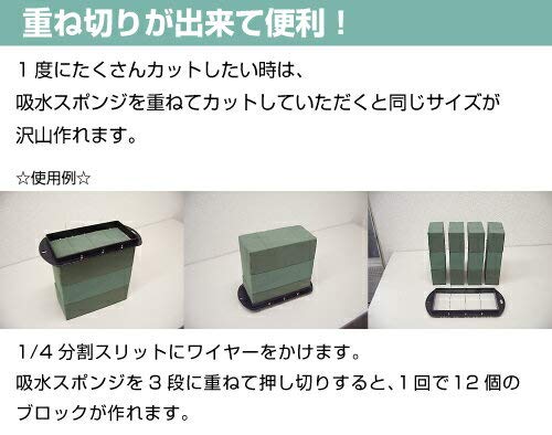 - 】一度にたくさんカットしたい時は、吸水スポンジを重ねてカットして頂くと同じサイズのオアシスが沢山作れます