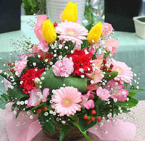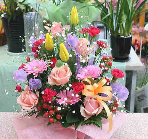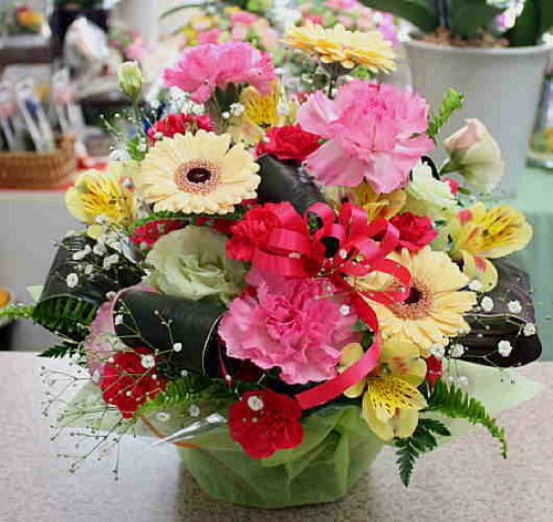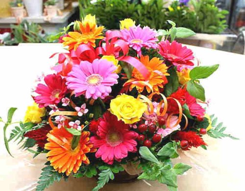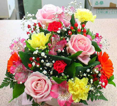 - ガーベラ・ばら・カーネーションなど季節のお花でお作りします。「誕生日」「お祝い」「お見舞い」「ギフト」などプレゼント・贈り物にオススメです。