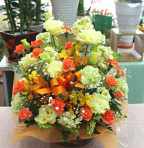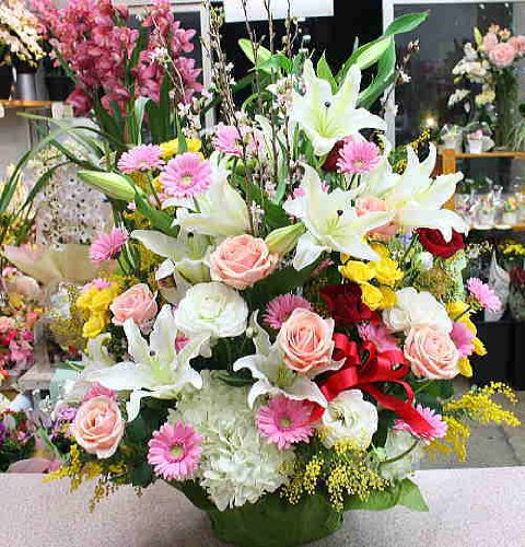 高さ約70センチと高さがありボリュームたっぷりのおまかせアレンジメント花です。