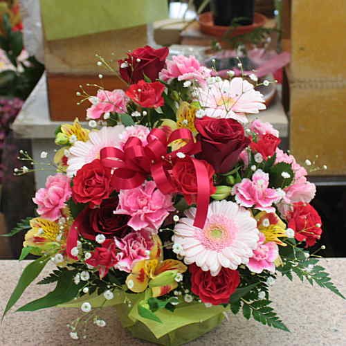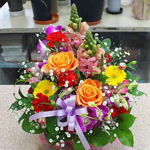 内容はおまかせになりますが、季節ごとに旬の花材を使ってボリューム感のあるアレンジメントを作成いたします。 お誕生日、お祝いなど様々なギフトに対応いたします。 ★コンビニ決済をご利用の場合は、発送可能になるまで日数がかかる場合がございます。お急ぎのご注文には対応不可能な場合がございます。