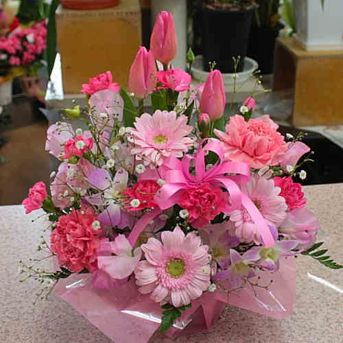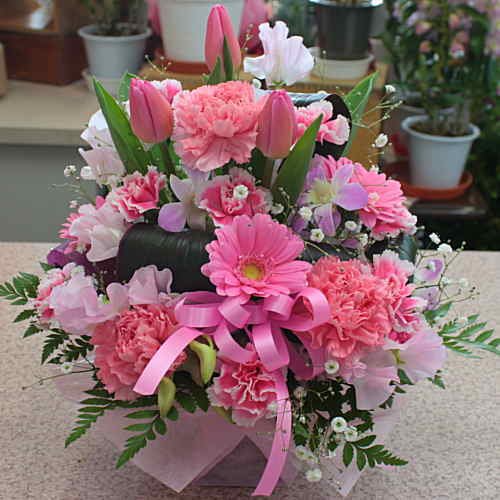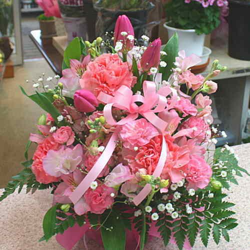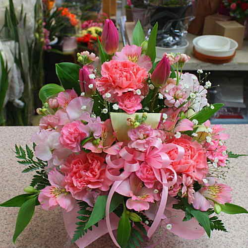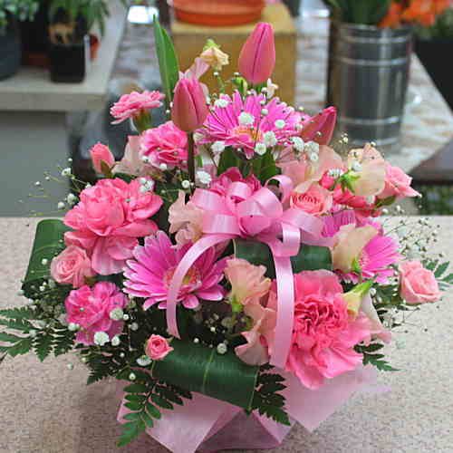生花アレンジメント ピンク系