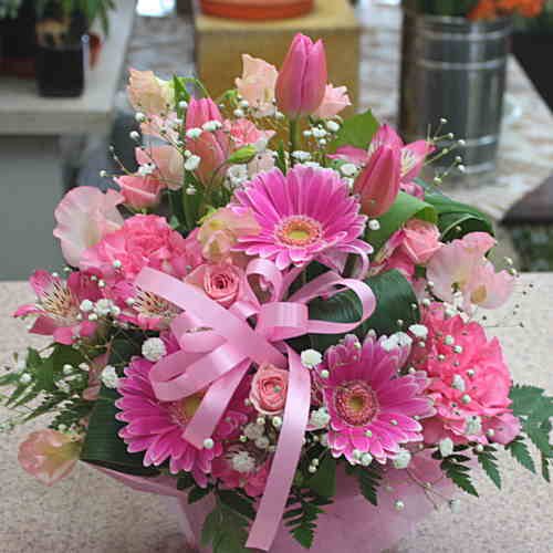 - 12時までのご注文は即日発送致します。季節の花で可愛くピンク系にアレンジメントいたします。 春の贈り物 花ギフト 誕生日プレゼントにおすすめです。