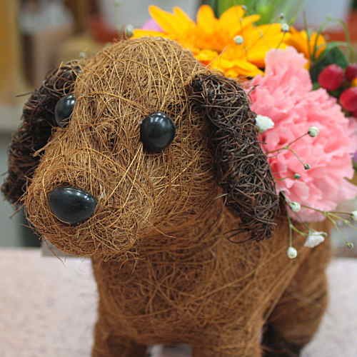 ワンちゃんバスケットの器は、フラワーアレンジメントが枯れた後も、可愛く活躍しますよ。