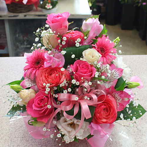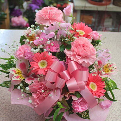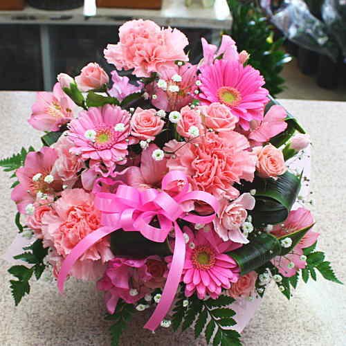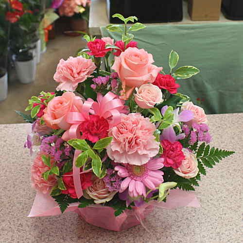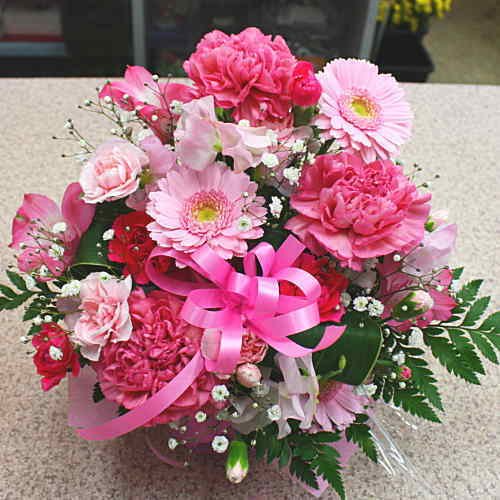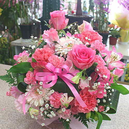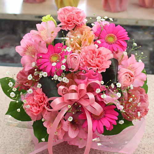 フラワーアレンジメント(生花) ピンク系のかわいい花 お祝いに贈るフラワーギフト