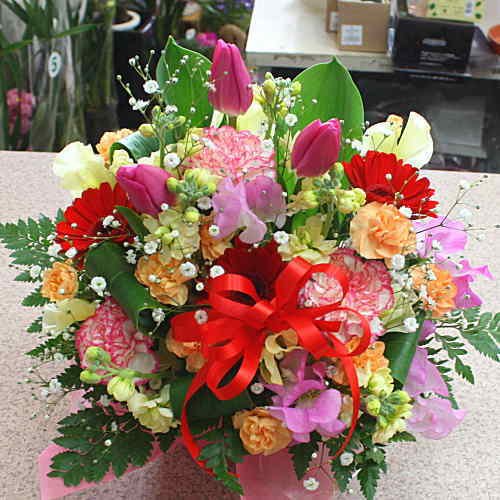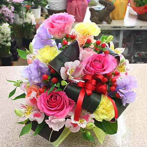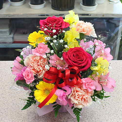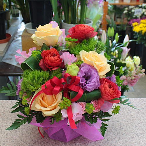 フラワーアレンジメント(生花)色はミックス系 お祝いや誕生日に華やかなプレゼント 気持ちをお花に託してお届け致します