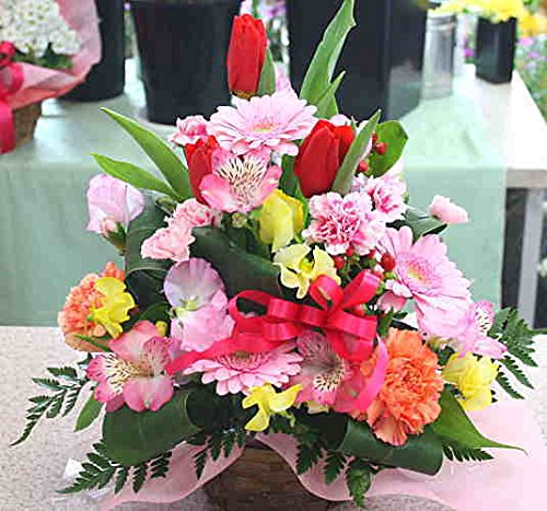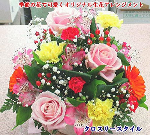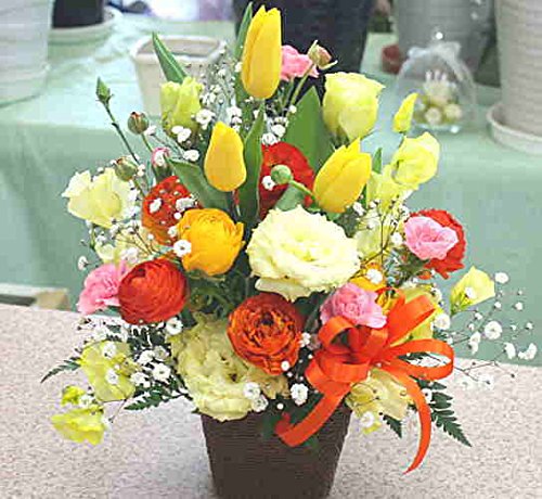 - サイズ;高さ約35cm:幅約30cm ※写真のお花はイメージです。お花の内容はお任せください。生花のため、仕入れの都合により花の種類、色、大きさが写真とは異なる場合がございますのでご了承下さい。