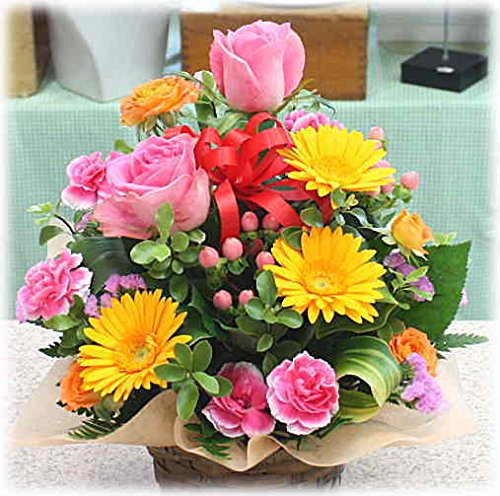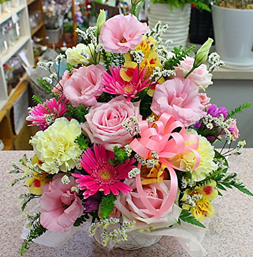- 季節の花、ばら、ガーベラ、カーネーションなどを主に季節の花を可愛く華やかにミックス系でアレンジメントします。