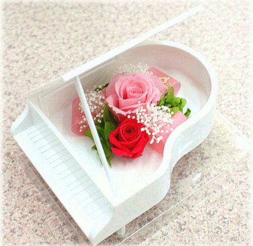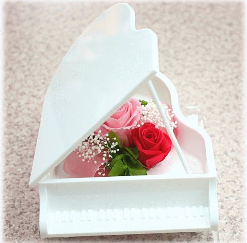 - サイズ:ピアノ 12×15.2×高14.8cm ・クリアケース12.4×15.8×15.3cm 商品取り扱いについて ・水をあげないでください。必要ありません。 ・高温、多湿、直射日光の所はお避けください。 (色おち色あせの原因となります) ・花びらはとてもデリケートで、切れやすいのでご注意下さい。