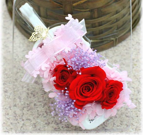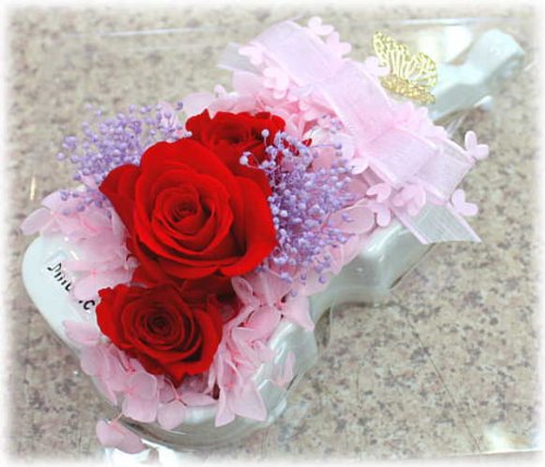 - プリザーブドフラワーは造花とは違い、生花に特殊な加工を施し柔らかな質感、鮮やかな色合い・雰囲気を長い間お楽しみいただけるように加工した枯れないお花です。