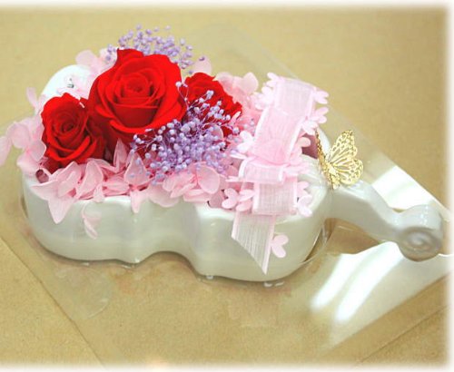 - サイズ:チェロ15.5×8×高さ4cm クリアケースサイズ:16×14×10cm 商品取り扱いについて ・水をあげないでください。必要ありません。 ・高温、多湿、直射日光の所はお避けください。 (色おち色あせの原因となります) ・花びらはとてもデリケートで、切れやすいのでご注意下さい。
