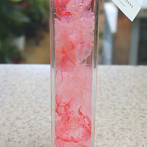 ハーバリウム ビンの中におとじ込められたおしゃれな植物 角ビンタイプ お祝い 誕生日プレゼントやインテリアに癒やしの空間 (ピンク)