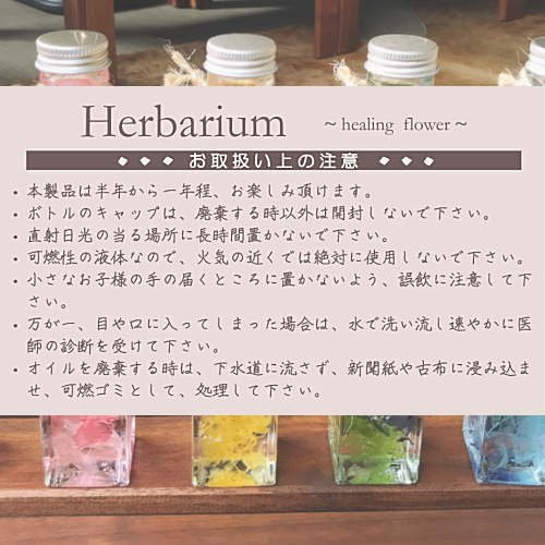 - 12時までのご注文は即日発送致します。ハーバリュウムとは特殊な液体に漬け込んだ植物の標本とされます。ビンの中にプリザーブドフラワーやドライフラワーなどバランス良くデザインしてハーバリウムオイル(液体)を入れたおしゃれな商品です。