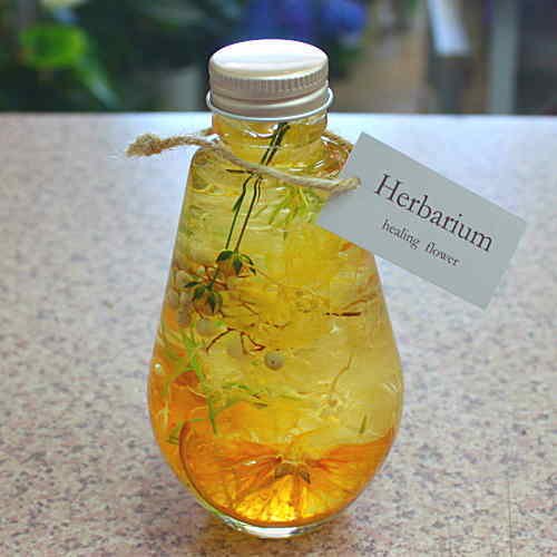 - ハーバリウムはそのままお部屋に飾ってもおしゃれですが、陽の光に照らすと、より一層その美しさが際立ちます。お手入れいらずで、1年ほど植物が美しいまま保存されます。瓶の蓋を開けると液体がこぼれますので不要になるまでは開けないで下さい。