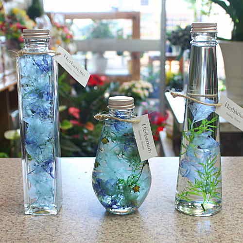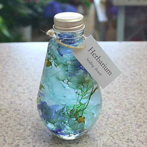 - 12時までのご注文は即日発送致します。ハーバリウム青色「ブルー」です。ハーバリュウムとは特殊な液体に漬け込んだ植物の標本とされます。ビンの中にプリザーブドフラワーやドライフラワーなどバランス良くデザインしてハーバリウムオイル(液体)を入れたおしゃれな商品です。