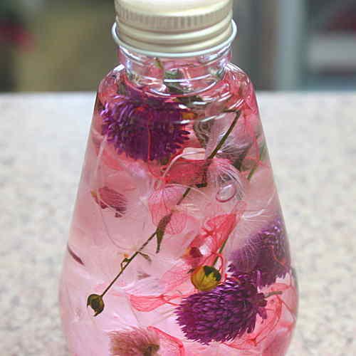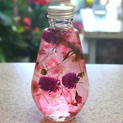 - ハーバリウムはそのままお部屋に飾ってもおしゃれですが、陽の光に照らすと、より一層その美しさが際立ちます。お手入れいらずで、3ヶ月から1年ほど植物が美しいまま保存されます。瓶の蓋を開けると液体がこぼれますので不要になるまでは開けないで下さい。