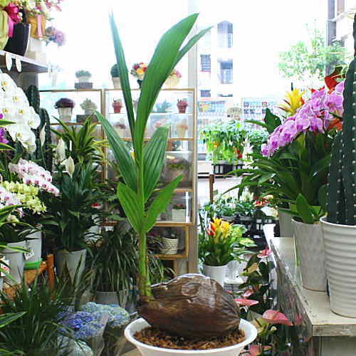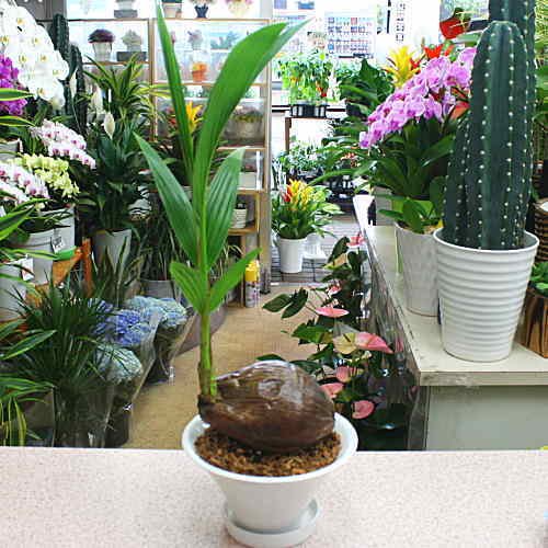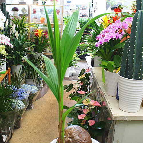 - 夏のインテリアにとても人気のココヤシ、ココナッツの大きな実から葉が上に伸びていて南洋の雰囲気です。