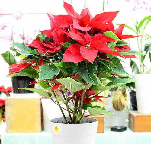 - ポインセチアは、冷たい風の当たらない所でご鑑賞ください。水は控えめにしてください。