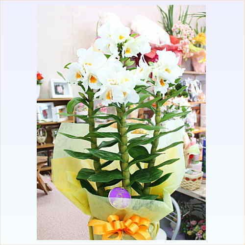 お祝い・誕生日などのプゼントに蘭の花 デンドロビューム鉢植え 白の上品な花