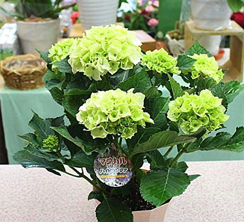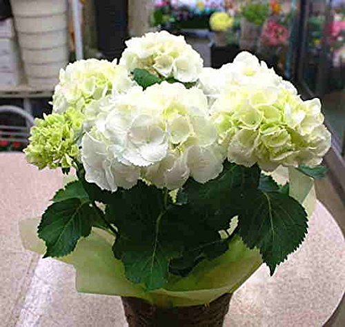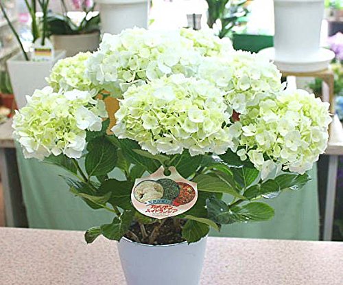 母の日プレゼントに、あじさい鉢植え花付きは白系のてまり型アジサイが可愛くてボリュームがあります。