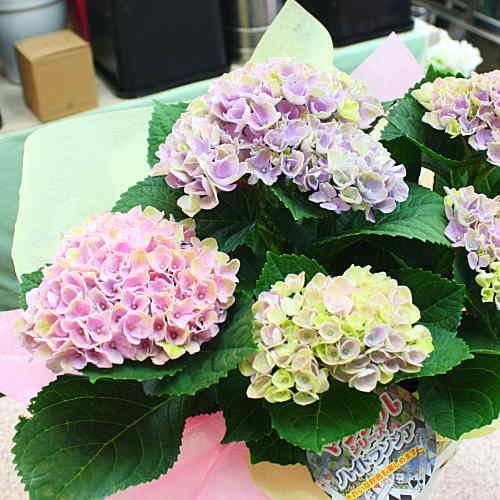 あじさい「マジカルレボリューション」はピンクパープル色で花色が変わるユニークなあじさいです。華やかに咲きとっても綺麗です。
