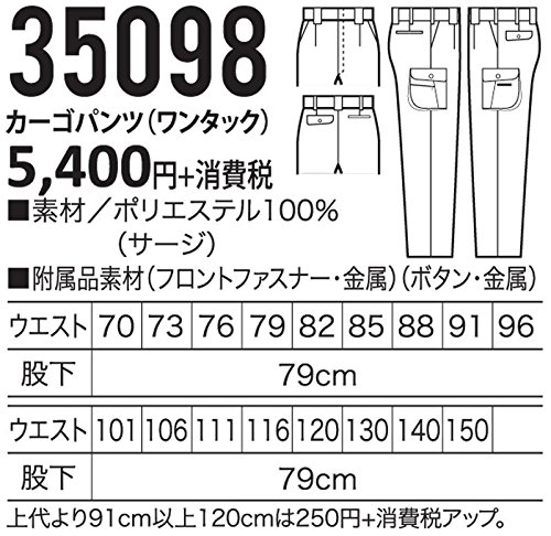 たてよこのびのび制電素材で着心地は快適! 洗濯してもすぐ乾き、シワになりにくい、イージーケアのズボンです。 ズボンの両脇にポケットが付いた作業ズボン【カーゴパンツ】です。 ポリエステル100%でとても柔らかい素材となっております。 たてよこのびのび制電素材で着心地は快適! 洗濯してもすぐ乾き、シワになりにくい、イージーケアのズボンです。 ■素材特長:制電(静電気の発生や帯電を防止)、ストレッチ(伸縮性のある素材) サージ:45度の斜め文様が特徴の綾織りです。丈夫で適度な厚みと伸縮性に優れています。 ~同素材シリーズ 上下揃えることが出来ます~ パンツ ジャンパー 31098 スラックス(ワンタック) 32098 長袖ジャンパー ~防寒シリーズ~ 54098 防寒ジャンパー 540981 防寒コート