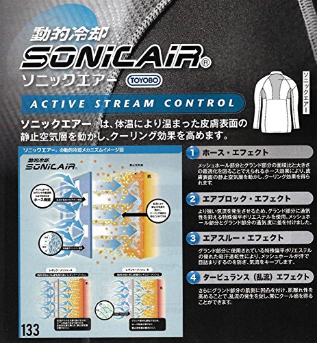 ソニックエアー(R)は、体温により温まった皮膚表面の静止空気層を動かし、クーリング効果を高めます。