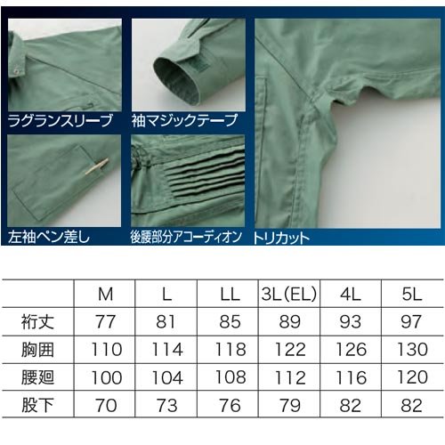 クロダルマ(KURODARUMA) メンズ ツナギ服 モスグリーン 4901 LL