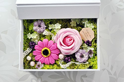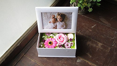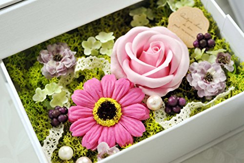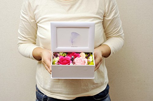 ソープフラワーのフォトボックス(ホワイト) 写真立て (ソープガーベラピンク)