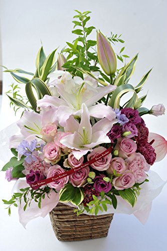 - バラやユリのお花をぎっしり詰め込んだ豪華なアレンジメント