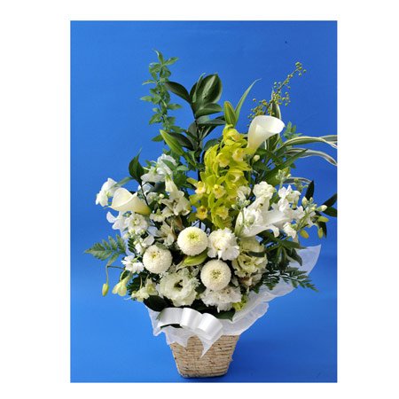 - 【生花アレンジメント】高さ約68cm×幅約40cm×奥行約25cm