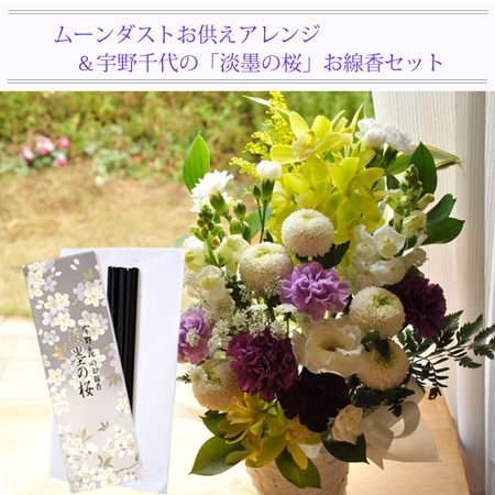 お供えセット ムーンダスト供花L+ 宇野千代「薄墨の桜」線香